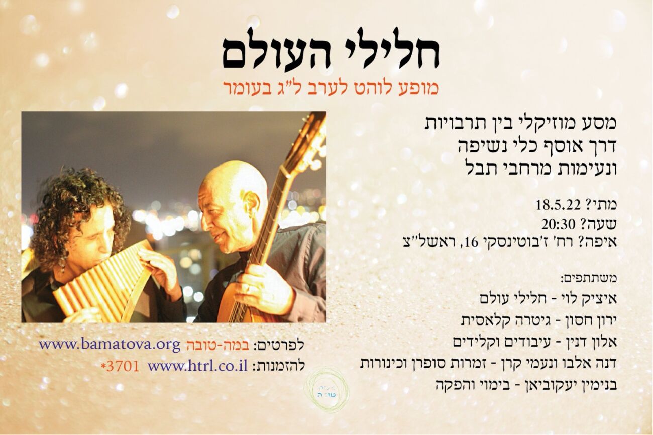 לרכישת כרטיסים: www.bamatova.org או אתר היכל התרבות https://htrl.co.il/event.asp?event=4684