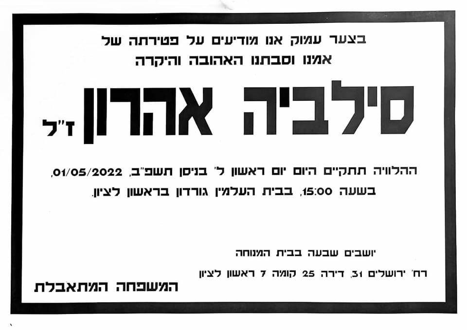 הלכה לעולמה שורדת השואה, סילביה אהרון.