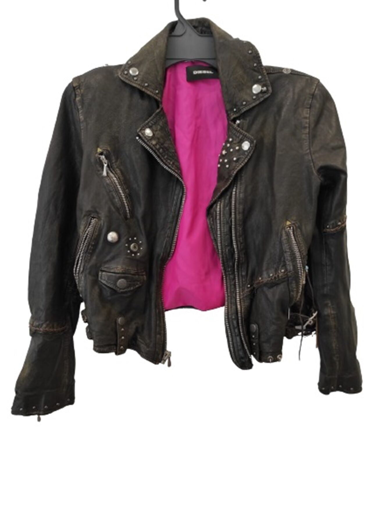 ז'קט עור של לוסי האריש שיוצע לתרומה