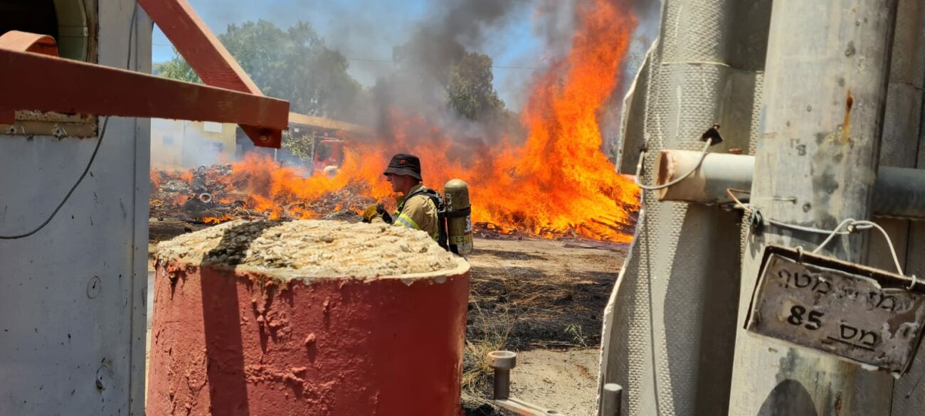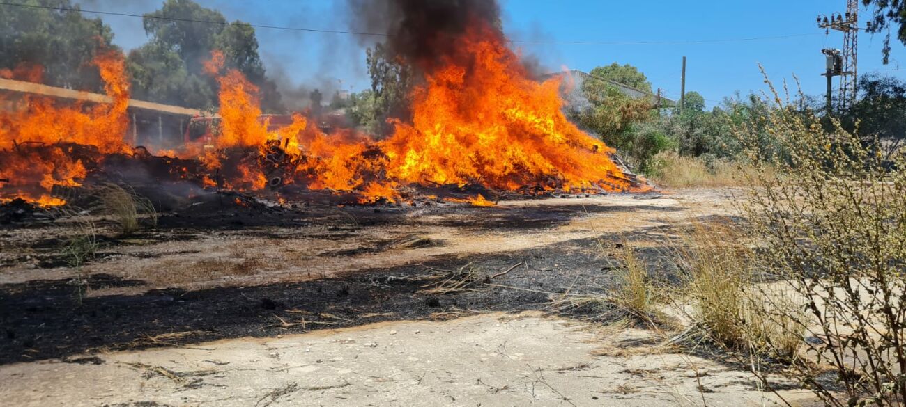 שריפה בשטח פתוח עם סכנה להאנגר בצריפין