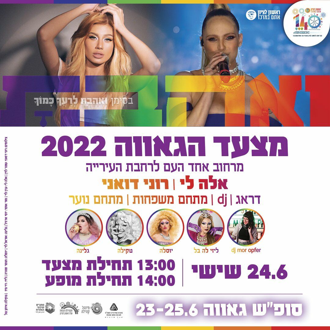 אירועי חודש הגאווה בראשון לציון! ביום שישי 24.6 ייצא מצעד הגאווה של ראשון לציון עם הפנינג ברחבת העירייה והופעות של אלה לי ורוני סופרסטאר