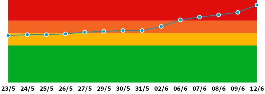 מקדם ההדבקה 1.44- מקדם ההדבקה עבר את 1 כלומר הקורונה נמצאת בהתפשטות.