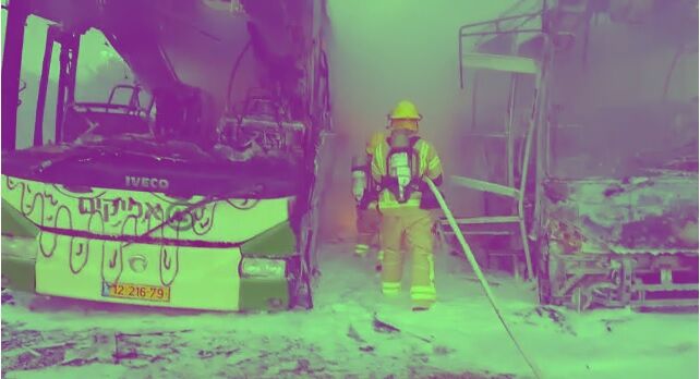 שריפת האוטובוסים! אחד האוטובוסים שעלה באש כוסה בגרפיטי, האם זה מצביע על הצתה?