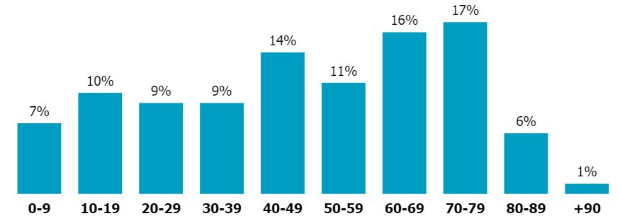 התפלגות החולים על פי גיל בעיר