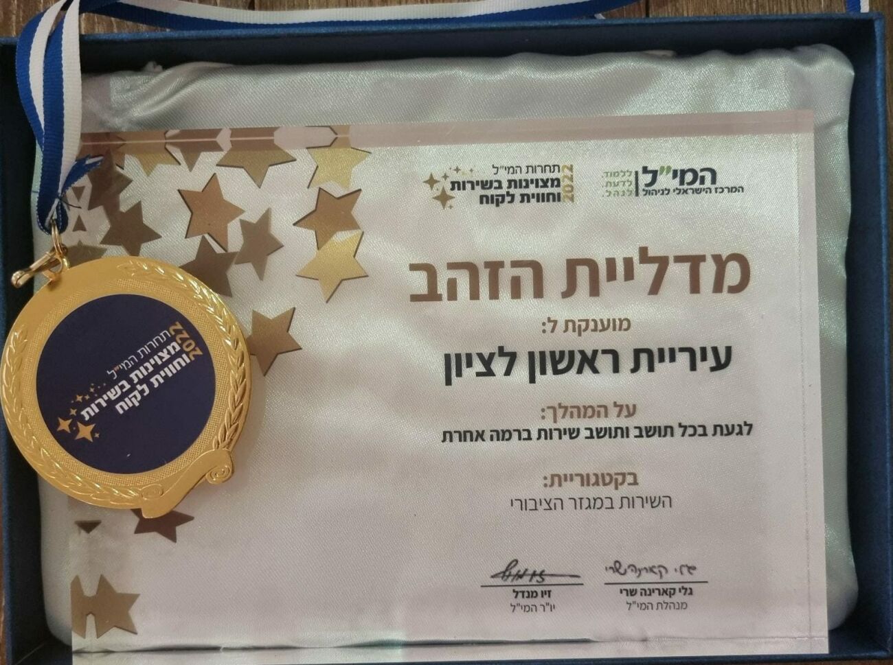 עיריית ראשון לציון זכתה במקום הראשון בתחרות שירות לתושבים במגזר הציבורי