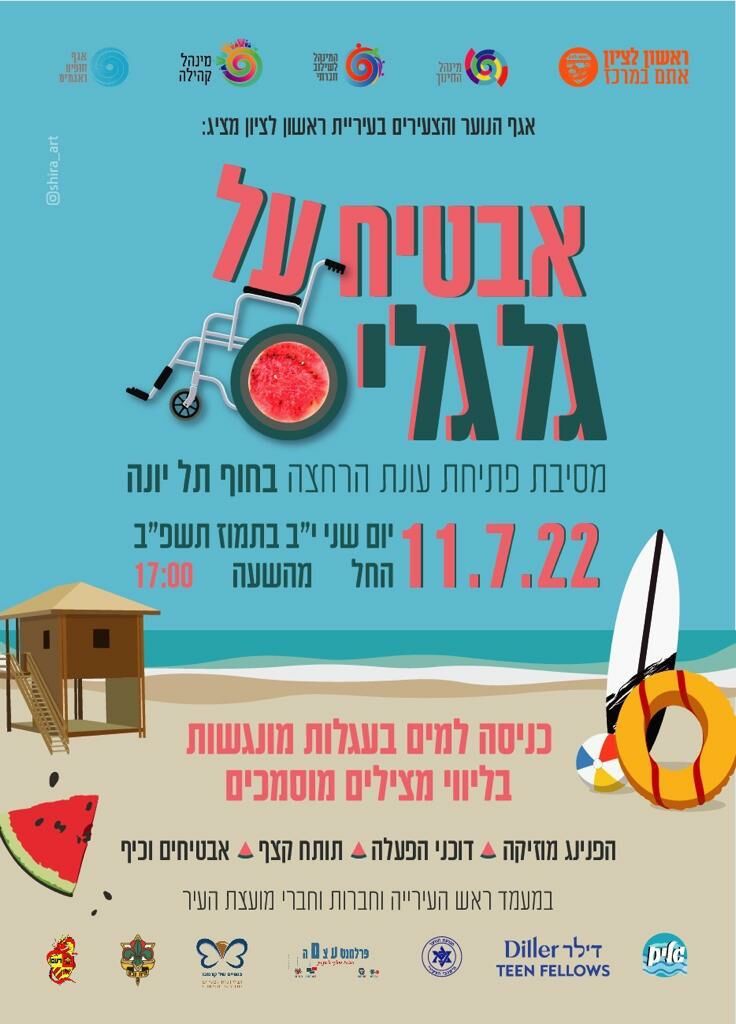 עיריית ראשון לציון: מינהל לשילוב חברתי, אגף הנוער במינהל קהילה ואגף חוף הים ואגמים יחנכו כמדי שנה את מיזם אבטיח על גלגלים המתקיים במטרה לסייע להנגיש את החוף לבעלי המוגבלות. המיזם נולד בעקבות מפגש משותף שנעשה עם הורים לילדים עם מוגבלות. אנשי המקצוע בעירייה שמעו את הצרכים ופיתחו את השירות בהתאם. את המיזם יזם והוביל חבר המועצה עידן מזרחי בשיתוף מינהל קהילה- אגף נוער וצעירים, אגף לשיקום נכויות במינהל הרווחה, אגף חופים ואגמים ,מנהל החינוך, בני נוער מעמיתי "דילר", ארגון הנוער "כנפיים של קרמבו", תנועות הנוער "מכבי צעיר" ו"הצופים", פרלמנט הנוער, פרלמנט הילדים, וכמובן מרכז הנוער ותחום ימי "גלים".