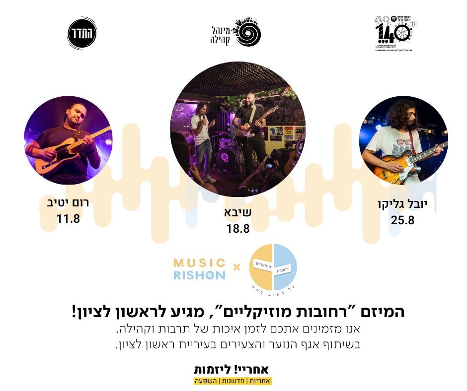 המיזם החברתי "רחובות מוזיקליים", המעניק במה לאמנים צעירים בראשית הדרך ומעודד קיום הופעות בשכונות פריפריה, ישיק את פעילותו לראשונה בשכונת רמת אליהו שבעיר ראשון לציון.