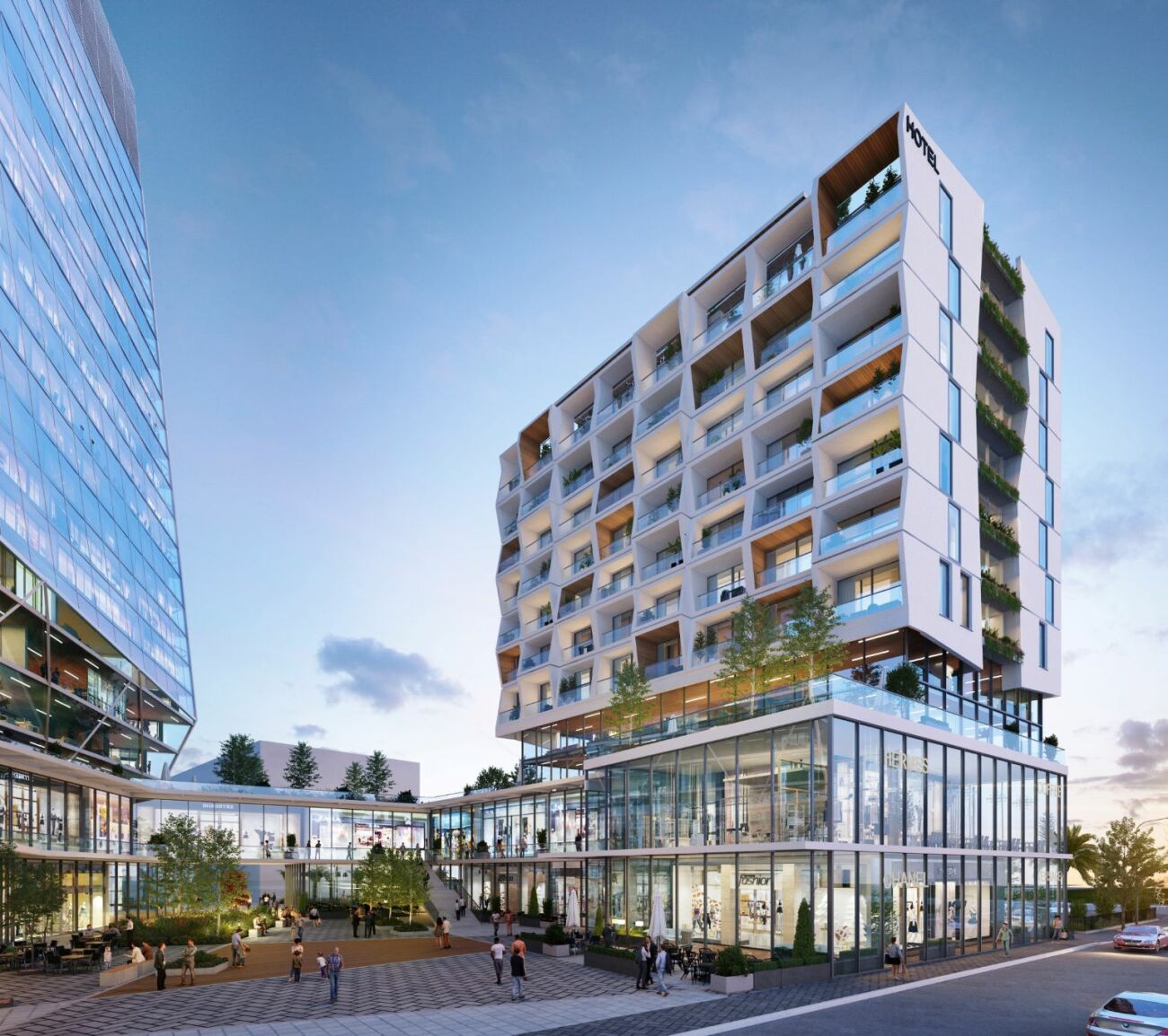 התוכנית שמקודמת למתחם כוללת את בית המלון הראשון באזור, אשר עתיד לכלול 100 חדרים ומופנה לקהל עסקי. המלון יהיה בן 10 קומות ויכלול 5,000 מ"ר של חדרים, אולמות המיועדים לכנסים והופעות, מסעדות, ספא, חדר כושר, בית כנסת ועוד.