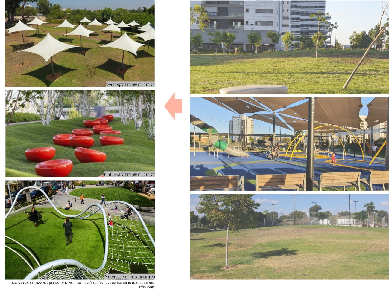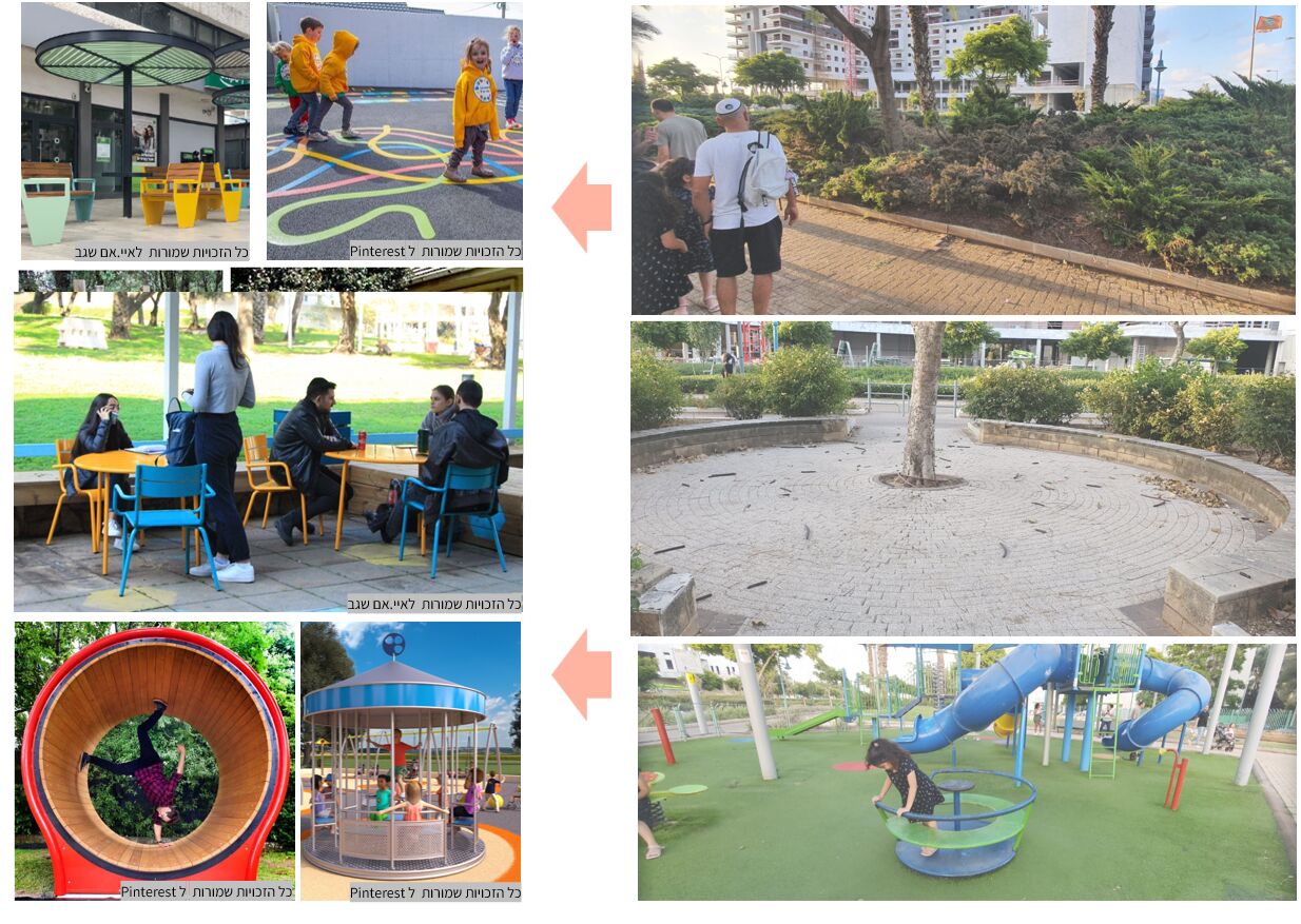 הוצאת מסלעה מתחומי הדשא, הוספת גרפיקה על גבי שבילי הגן, חיפוי ספסלי בטון בדק עץ לישיבה נוחה, הוספת ריהוט רחוב, ספסלים, שולחנות ושמשיות צל. תיקון מתקני משחק קיימים, החלפת קרוסלה, החלפת ברזיה בקולר ותיקון ניקוז, הוספת תאורת אוירה בקשתות