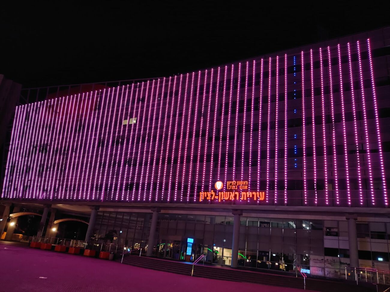 לרגל חודש המודעות לסרטן השד, עד לסוף חודש אוקטובר יואר בניין עיריית ראשון לציון בוורוד להגברת המודעות לבדיקות וגילוי מוקדם