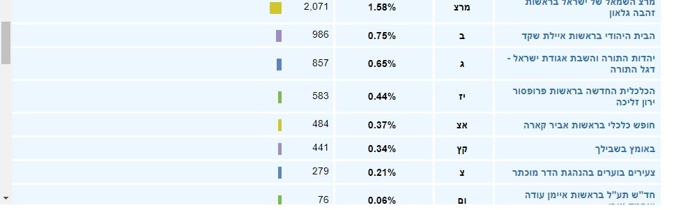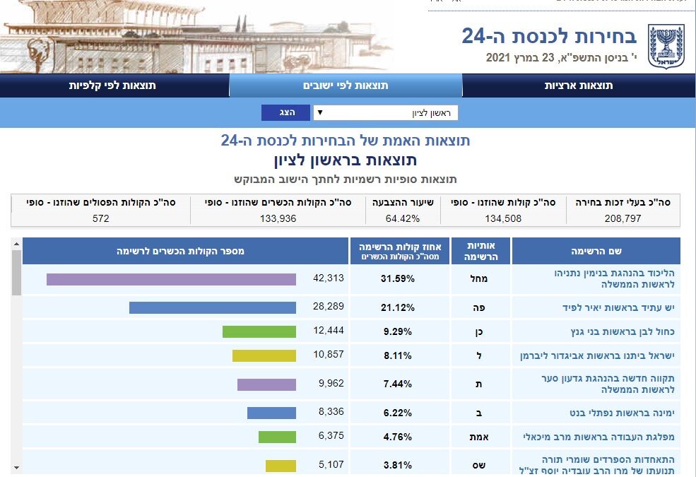 להלן תוצאות האמת לבחירות לכנסת בעיר ראשון לציון