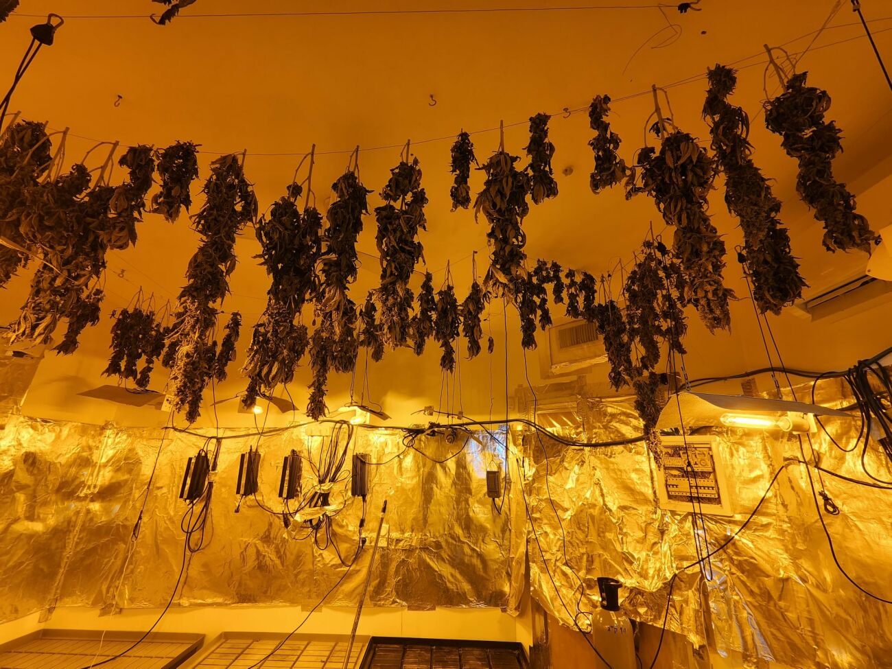 בחיפוש בבית תפסו השוטרים כ-150 שתילים של סם מסוג קאנביס במשקל כולל של כ-12 ק"ג וכן ציוד המשמש לגידול וייצור סמים.