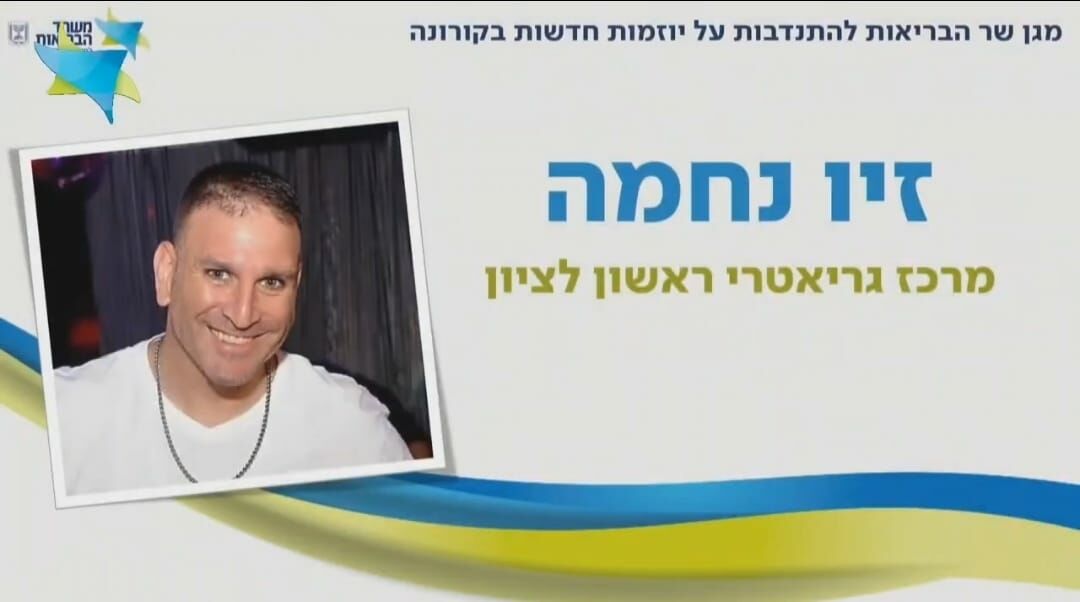 ברכות לפעיל החברתי, זיו נחמה שזכה במגן שר הבריאות להתנדבות על פעילות ההתנדבות עם קבוצת עושים טוב לקהילה במרכז הגריאטרי מלבן בראשון לציון