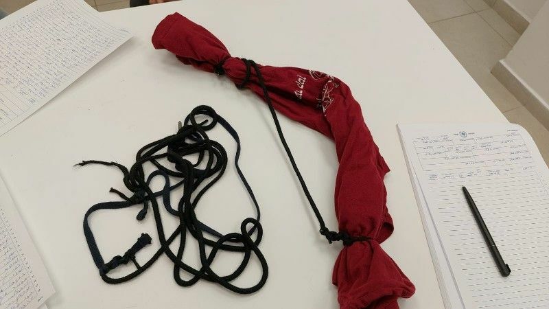 מצ״ב תמונת החבל באמצעותו כפתו החשודות את המדריכה.
