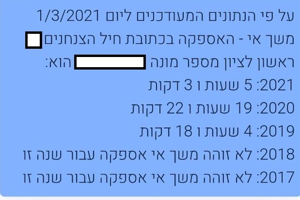 יש לציין כי באתר חברת החשמל ניתן לבדוק כמה זמן היו הפסקות חשמל על פי שנים. האתר מציג על פי שנים את מספר השעות בהן לא הייתה אספקת חשמל בכתובת.