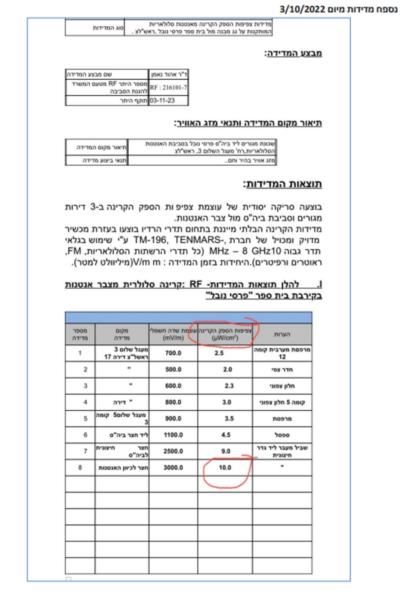 התוצאות לא הניחו את דעת התושבים (לטענתם מדובר על תקנים מיושנים שאינם עומדים בתקנים הבינלאומיים) והזמינו שני מודדים שטענו כי התוצאות היא מזיקות. כמו כן הם טוענים כי קיימת אנטנה נוספת באזור שאינה מופיעה במפות של המשרד להגנת הסביבה.