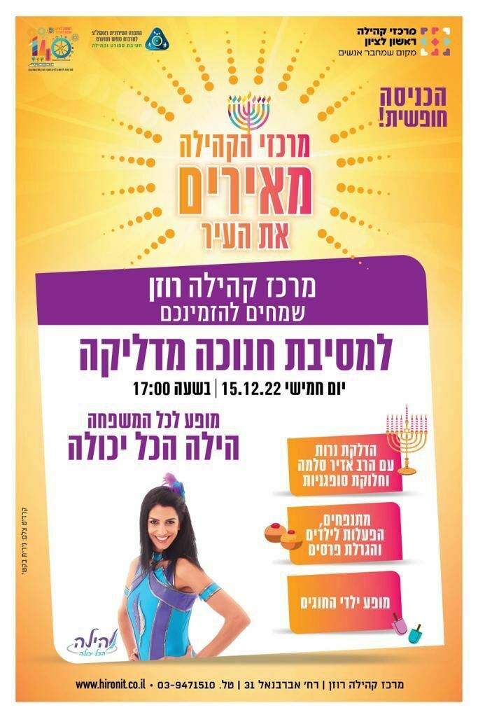 למדריך המלא לאירועי חנוכה בראשון לציון לחצו כאן https://www.be106.net/231/63773
