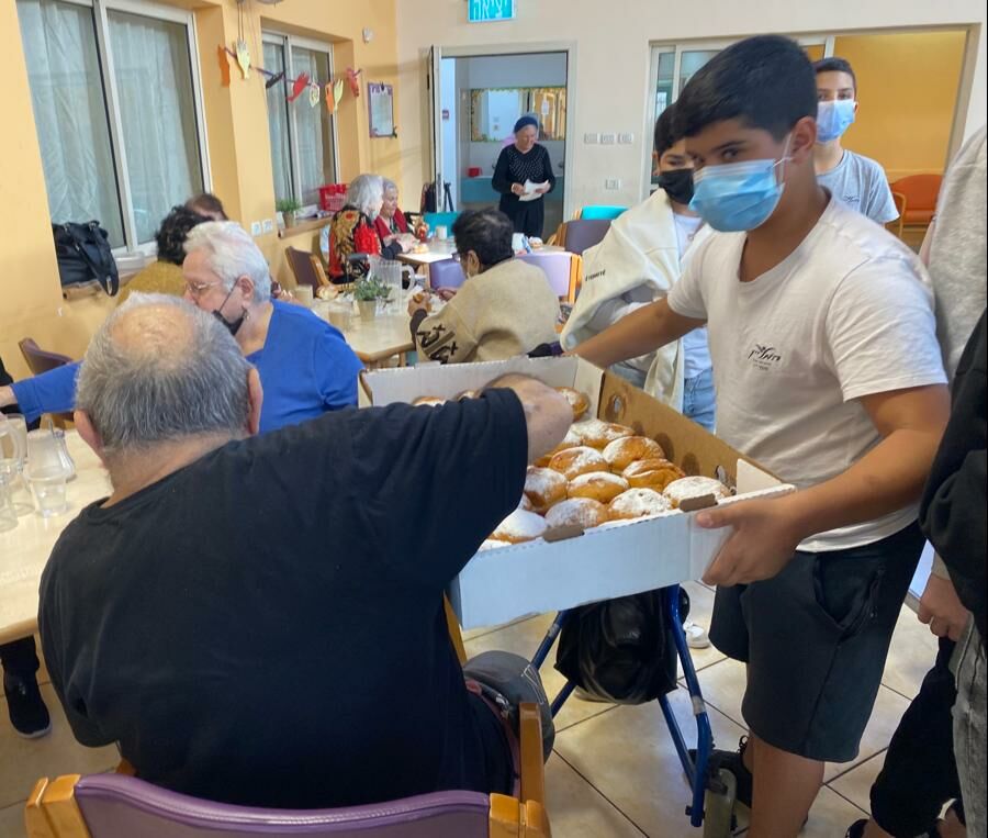 כמידי שנה גם השנה יצאו תלמידי שכבת ז' מחטיבת "המעיין" במקיף י"ב, לשמח את הסבים והסבתות בבית הקשיש שבהנהלת טלי וינברגר ובהובלת המורה רויטל אלון. הילדים הגיעו עם סופגניות, שירים וחידונים ויחד איתם הדליקו נרות, הרקידו ובילו בנעימים.