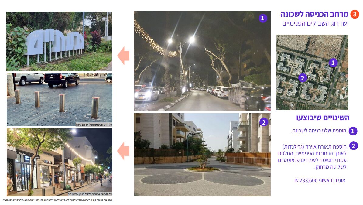3. הוספת שילוט עם שם השכונה בכניסה.