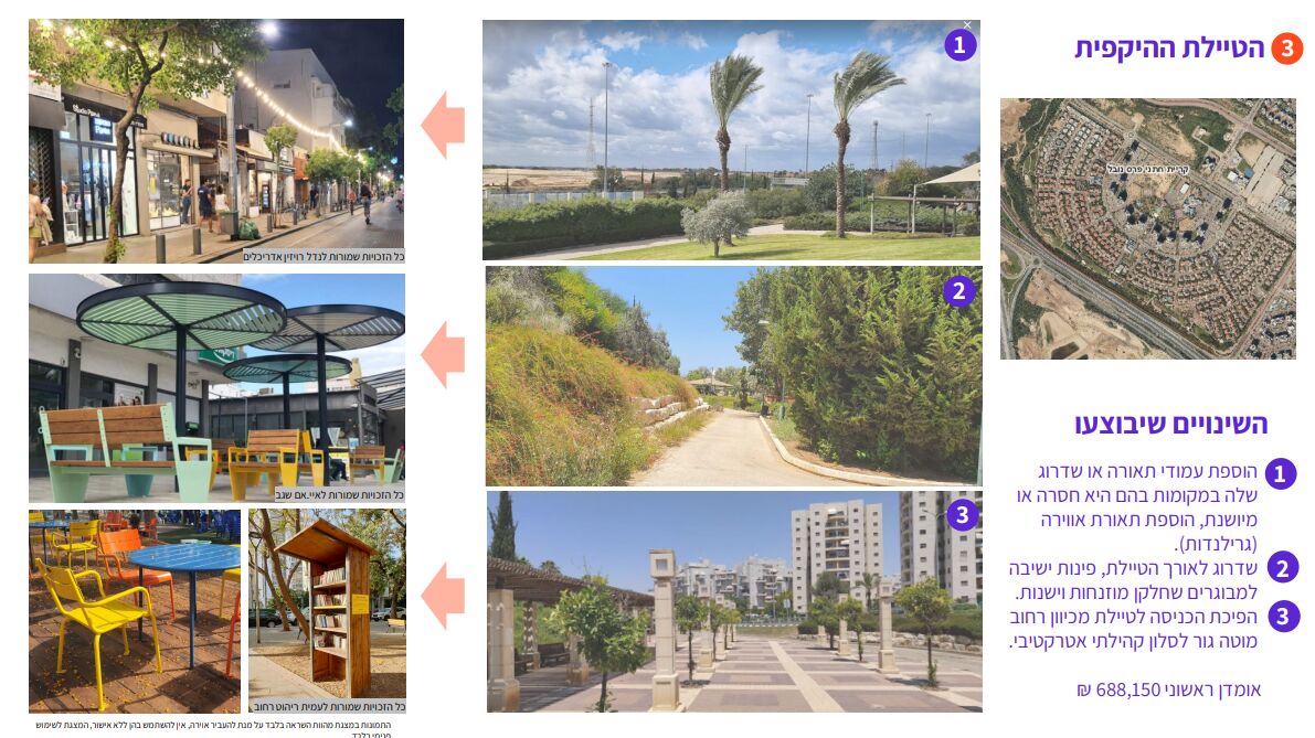 2. שדרוג לאורך הטיילת של פינות הישיבה למבוגרים שחלקן מוזנחות וישנות.