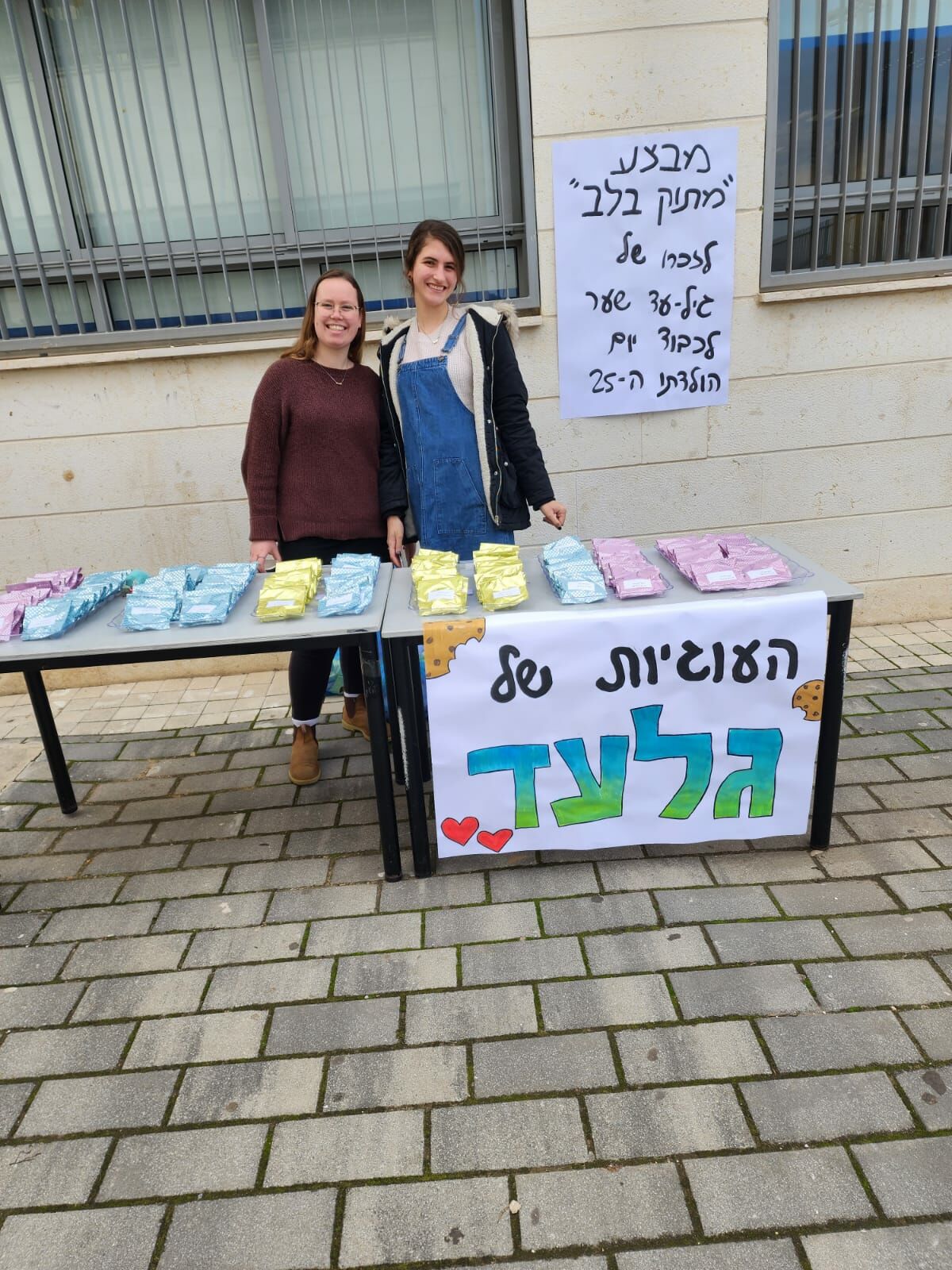 בנות השירות בבית הספר המעיין ראשון לציון חלקו עוגיות לתלמידים במסגרת פרוייקט "מתוק בלב" לזכרו של גיל- עד שער ז"ל