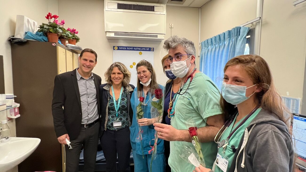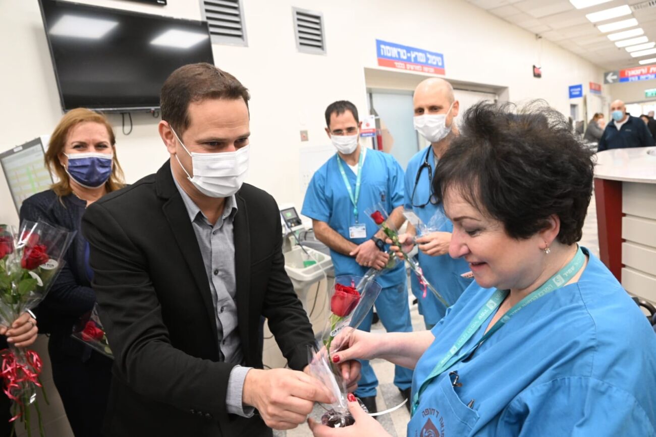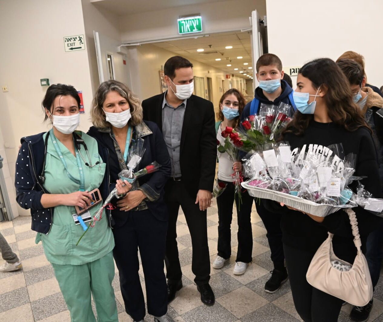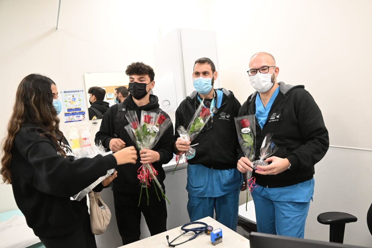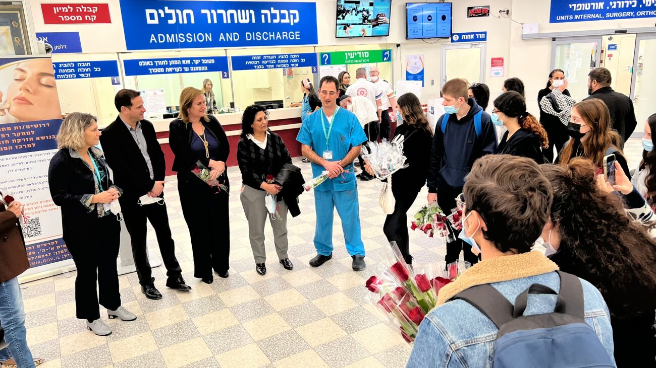 הם פגשו את מנהלת בית החולים - ד״ר אסנת לבציון קורח ובצוותים הרפואיים, והודו להם מקרוב על העבודה היומיומית הקשה והמסורה. יחד הם חילקו ורדים ועוגות אישיות שהכינו התלמידים עבור הצוותים. הצוותים הרפואיים הודו לראש העיר וצוותו ולמנהלת המרכז הרפואי על המחווה היפה המרגשת.