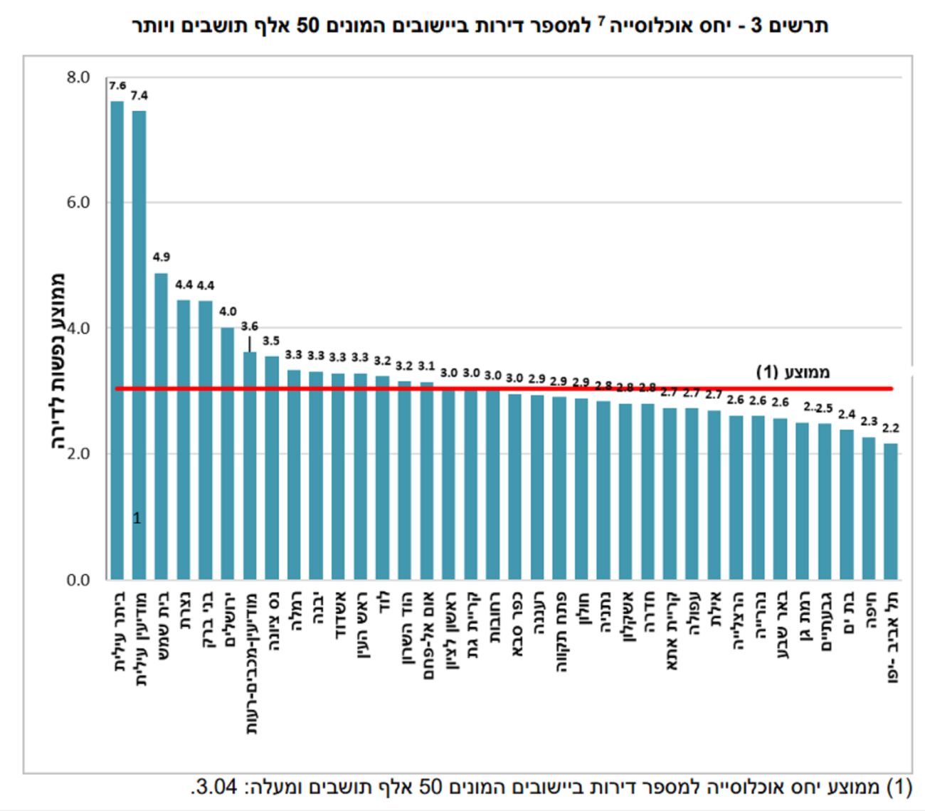 יחס האוכלוסייה למספר דירות ביישובים המונים 50 אלף תושבים ויותר