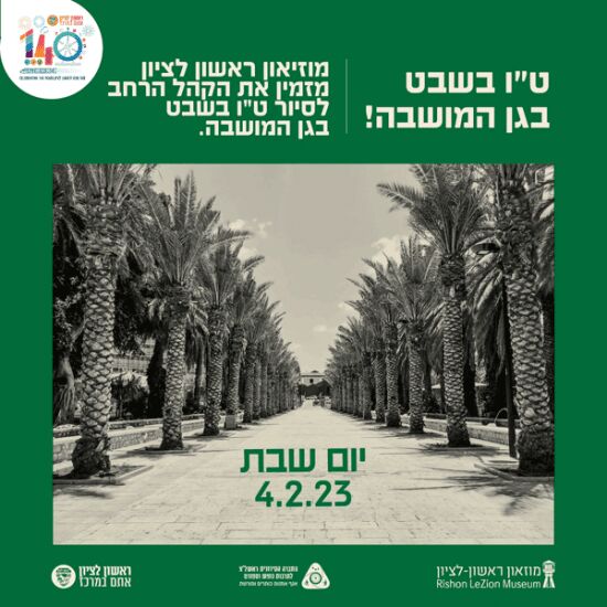 מוזיאון ראשון לציון מזמין את הקהל הרחב לסיור לכבוד טו בשבט בגן המושבה. טיול בין עצים עתיקים שראו היסטוריה והיו עדים לסיפורי אהבה ואירועים חשובים שהתרחשו למרגלותיהם ופגישה עם הברון רוטשילד.