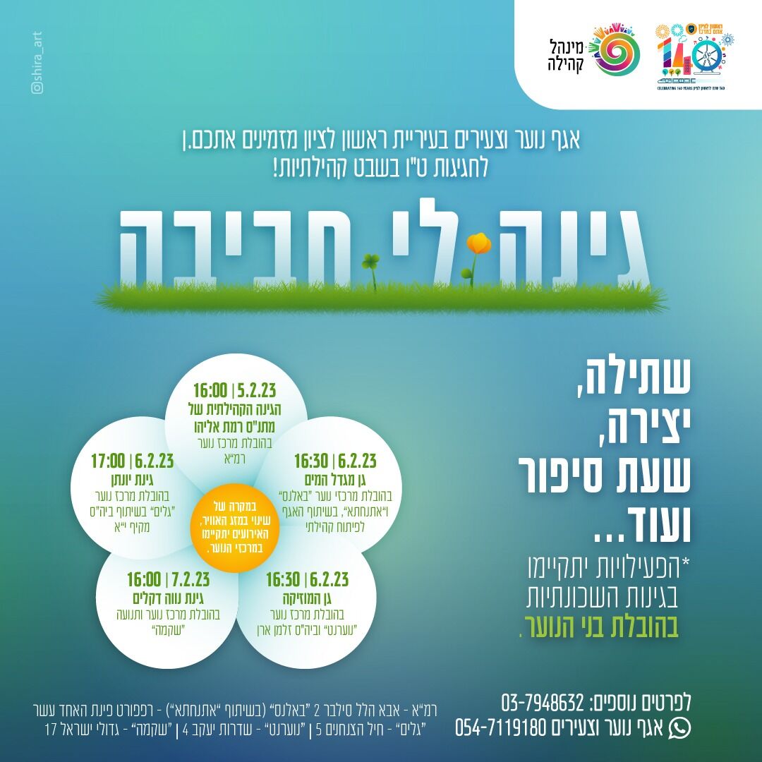 6.2.23 בשעה 17:00 - גינת יונתן - בהובלת מרכז נוער "גלים" ברחוב חיל הצנחנים 5, בשיתוף ביה"ס "מקיף י"א".