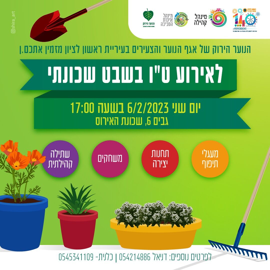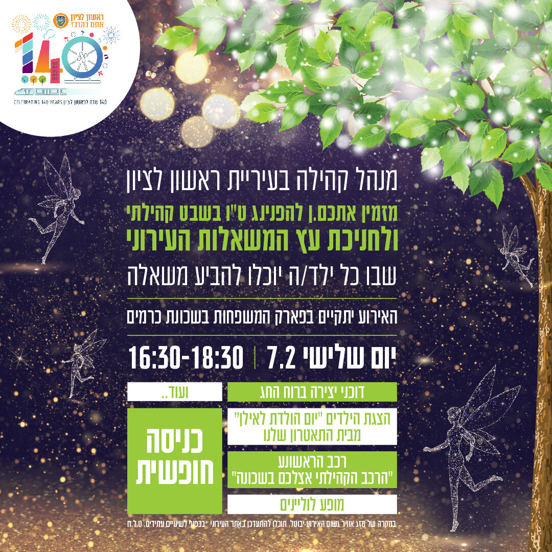 אגף נוער וצעירים בעיריית ראשון לציון מזמינים אתכם.ן לחגיגות ט"ו בשבט קהילתיות!