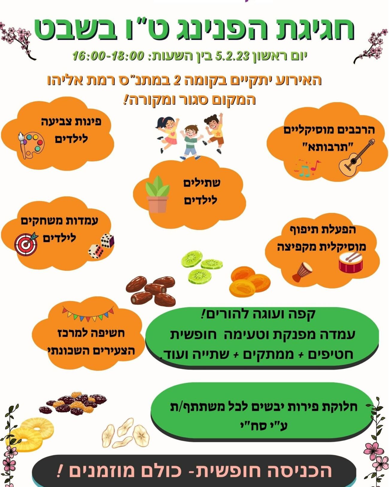 הפנינג ט"ו בשבט לכל המשפחה יום ראשון 5.2 בין השעות 16:00 - 18:00