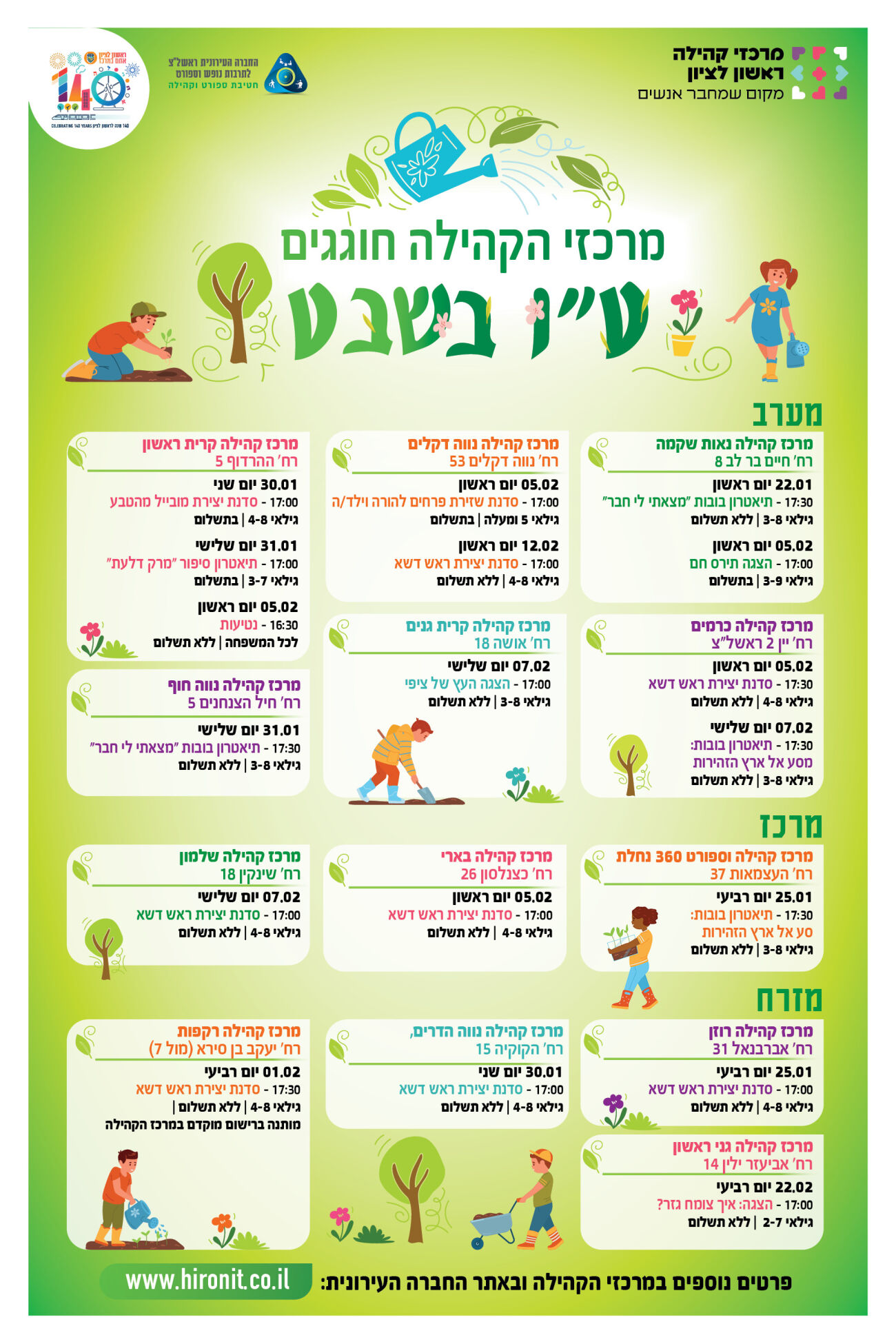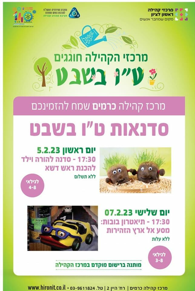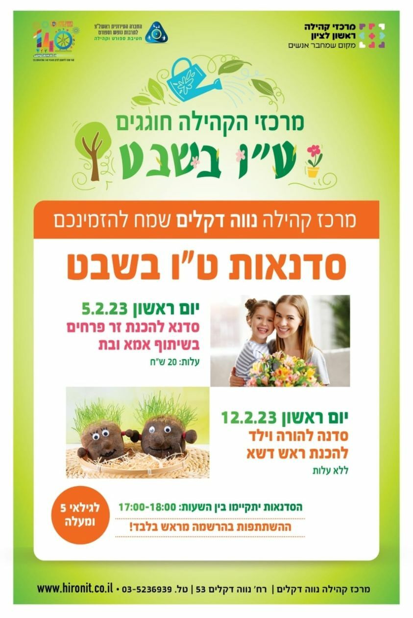 עיריית ראשון לציון והחברה העירונית הכינו שלל אירועים ופעילויות לטו בשבט הכוללות סיורי בטבע העירוני, סיור היסטורי במוזיאון ראשון לציון, הצגות ילדים, סדנאות ועוד.