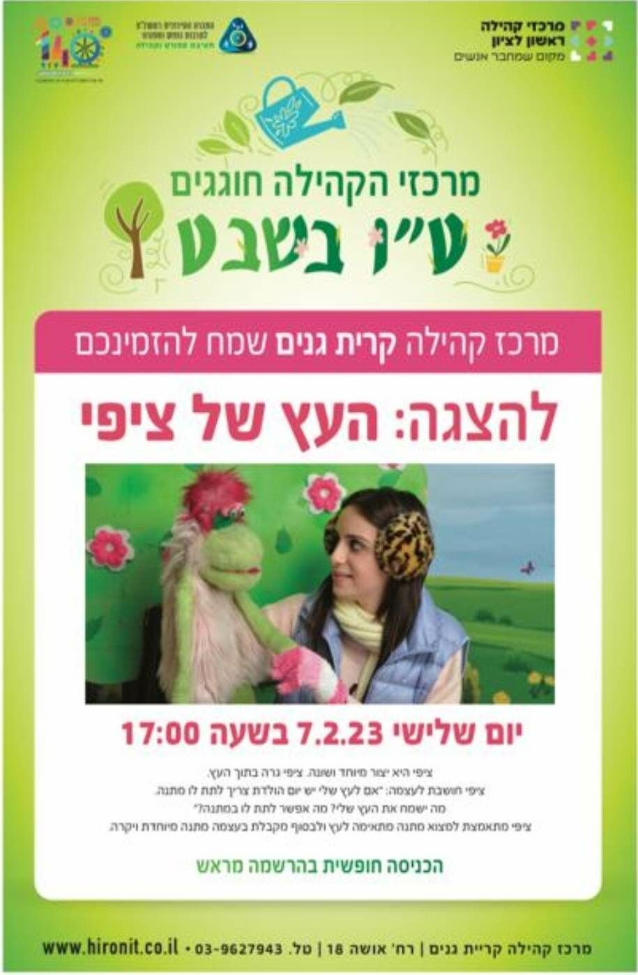 יום שלישי 7.2 בשעה 17:00 ההצגה העץ של ציפי