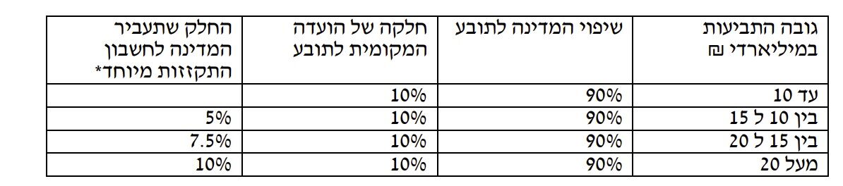 להלן טבלת השיפוי של המדינה לעיריית ראשון לציון