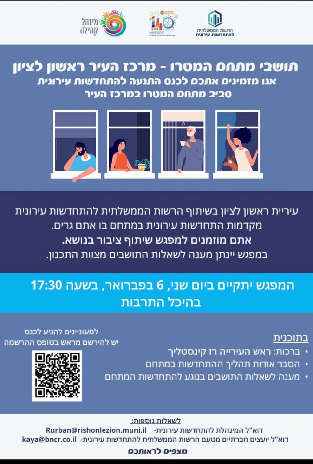 לפרטים נוספים ניתן לפנות למינהלת ההתחדשות העירונית Rurban@rishonlezion.muni.il
