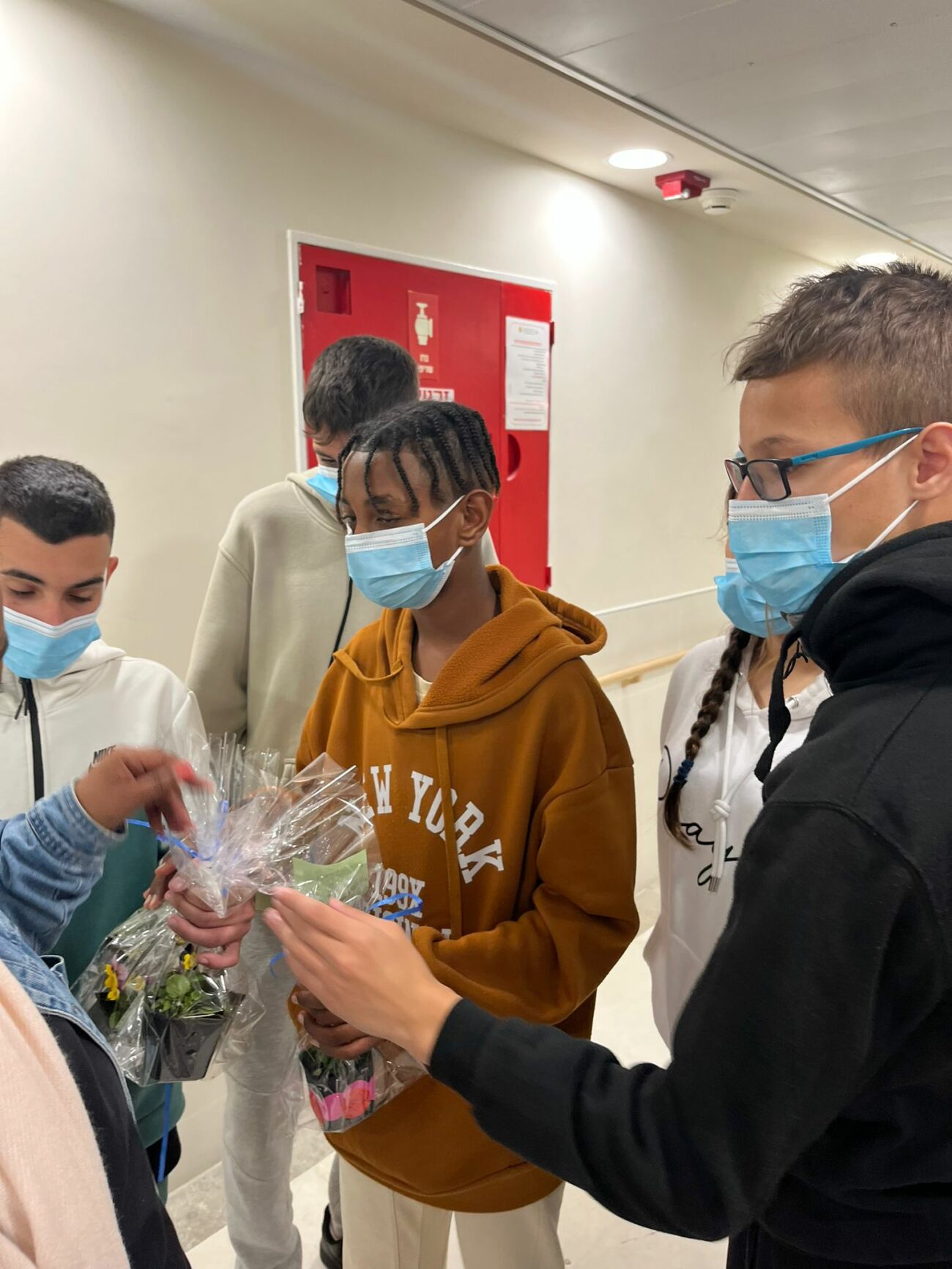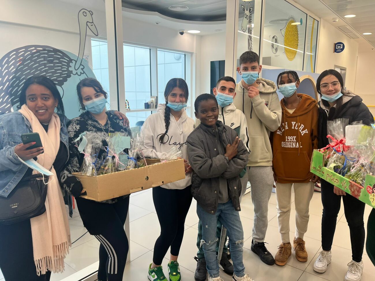 לרגל ט"ו בשבט תלמידי כפר הנוער ויצו בראשון לציון הגיעו לבית החולים וולפסון וחלקו שתילים לצוותים הרפואיים ולמטופלים