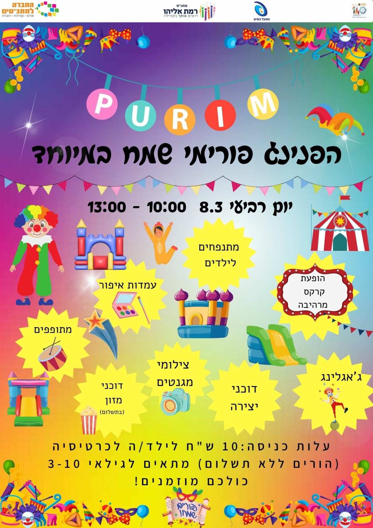 מסיבת פורים קהילתית עם סדנאות פורימיות, קעקועים ובלונים, ועוד הפתעות.