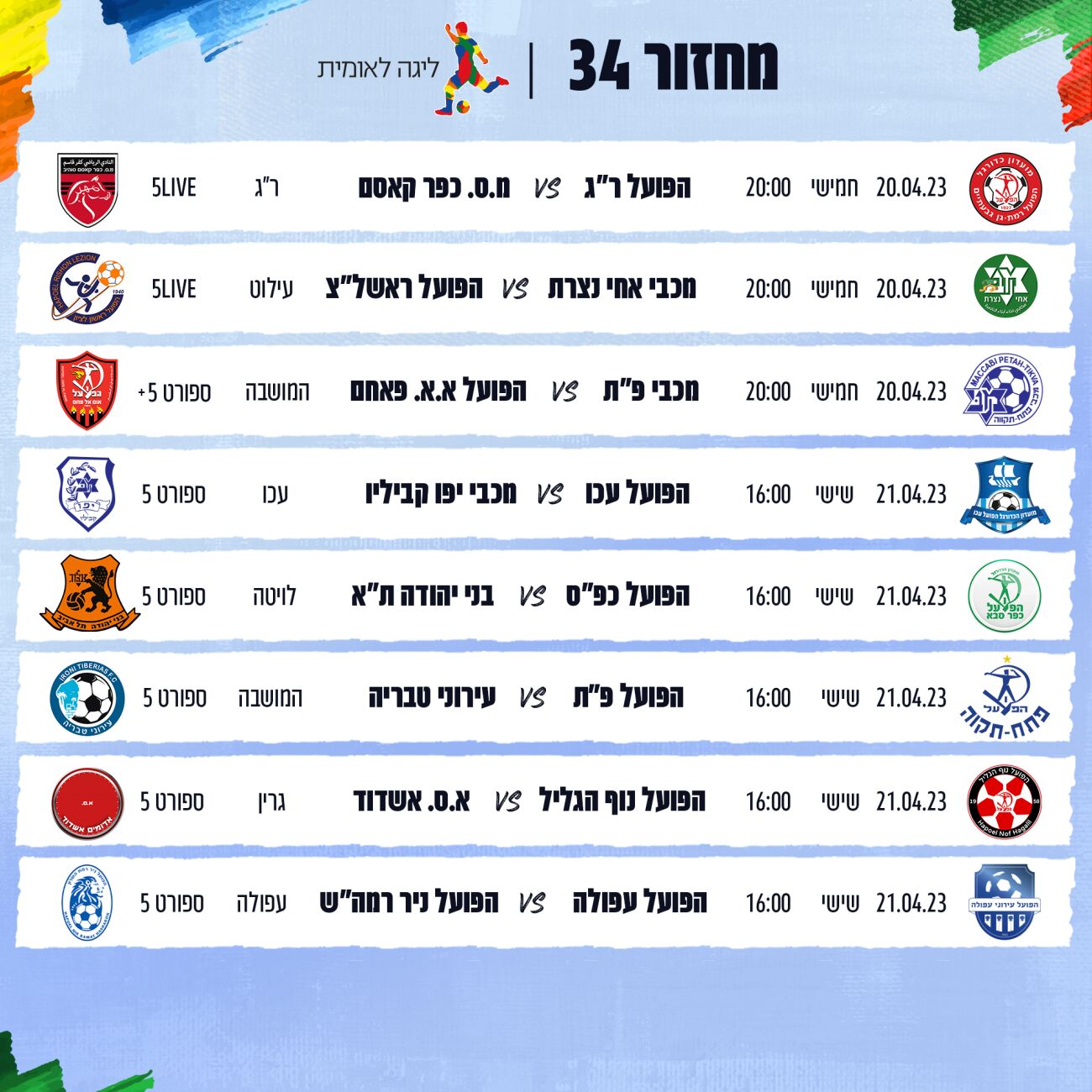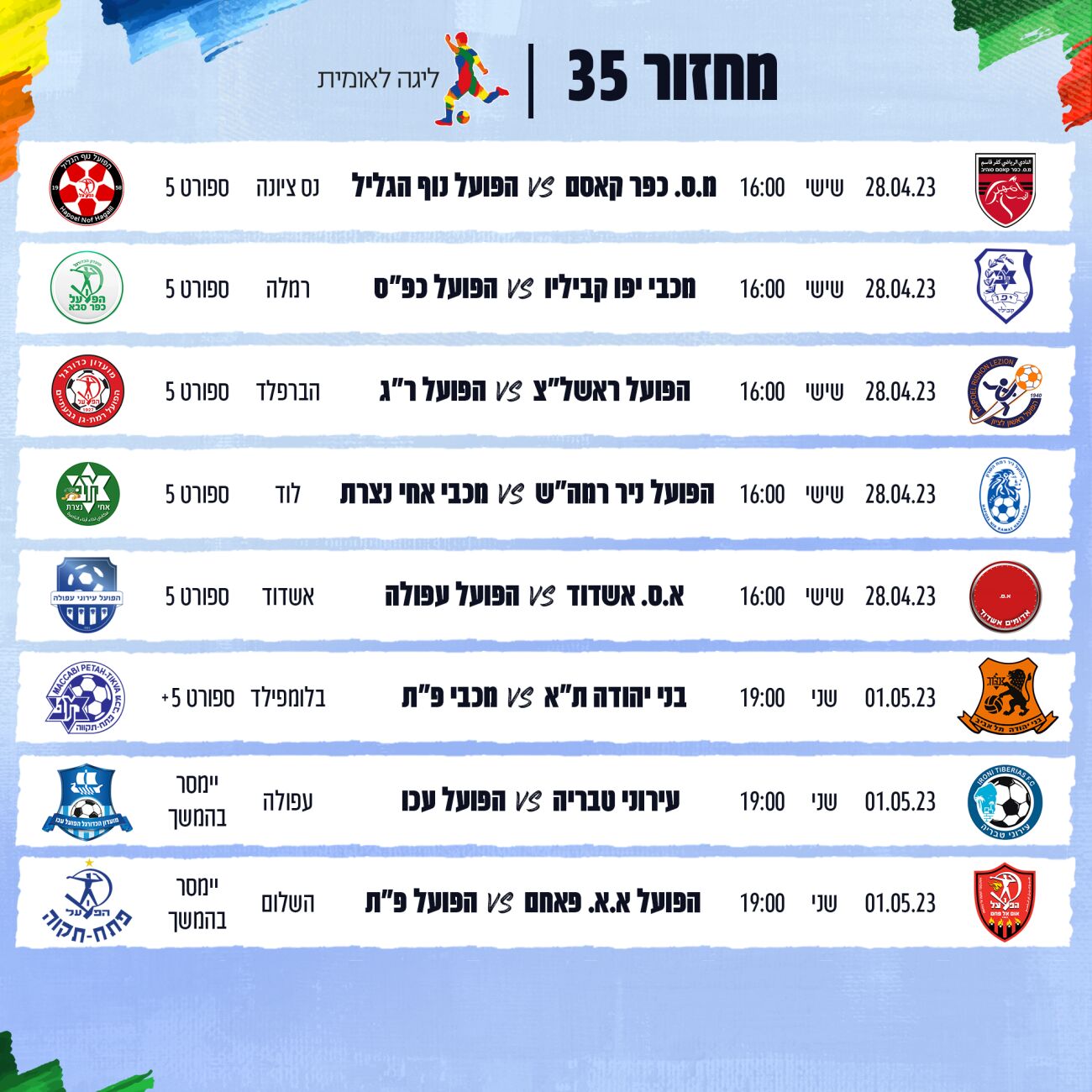 מנהלת ליגות בכדורגל פרסמה את לוח משחקי הפלייאוף של ליגת העל והליגה הלאומית.