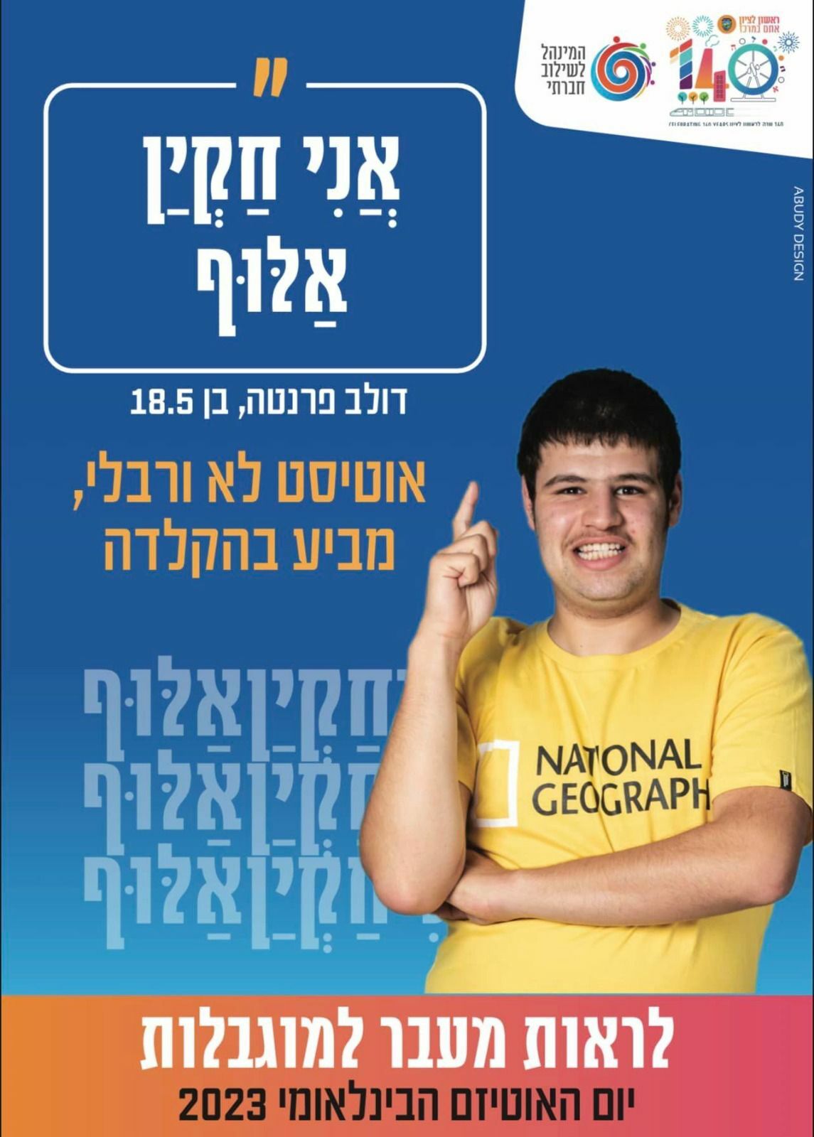 יונתן הלומד בבי"ס שקמים לחינוך מיוחד, הוא אוטיסט לא וורבלי, משורר, הוגה דעות ואקטיביסט. מתקשר באמצעות הקלדה נתמכת על האייפד שלו, ומשתמש ביכולת הזו להעביר את מסריו בכל תחומי החיים, רצונותיו ודעותיו.