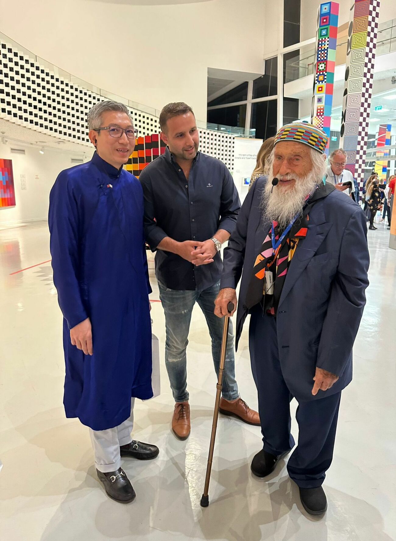 ״ היה לי כבוד להזמין ולארח את שגריר וויאטנם בישראל Mr Ly Duc Trung בחגיגות יום ההולדת 95 של האמן הבינלאומי יעקב אגם, אני מאחל ליעקב אריכות ימים ובריאות איתנה, כבוד גדול עבור העיר שלנו שיצירותיו מוצגות כאן, ואעשה כל שביכולתי על מנת שהמוזיאון יקבל הכרה בינלאומית. השגריר Mr Ly Duc Trung התרשם מהעיר וההיסטוריה שלנו שכיום חוגגת 140 שנים, קבענו לחזק ולקדם את שיתוף הפעולה תוך חילופי סטודנטים וקידום עסקים בזירה הבינלאומית ולפעול לקיים ברית ערים תאומות בין ראשון לציון לעיר בכירה בויאטנם.