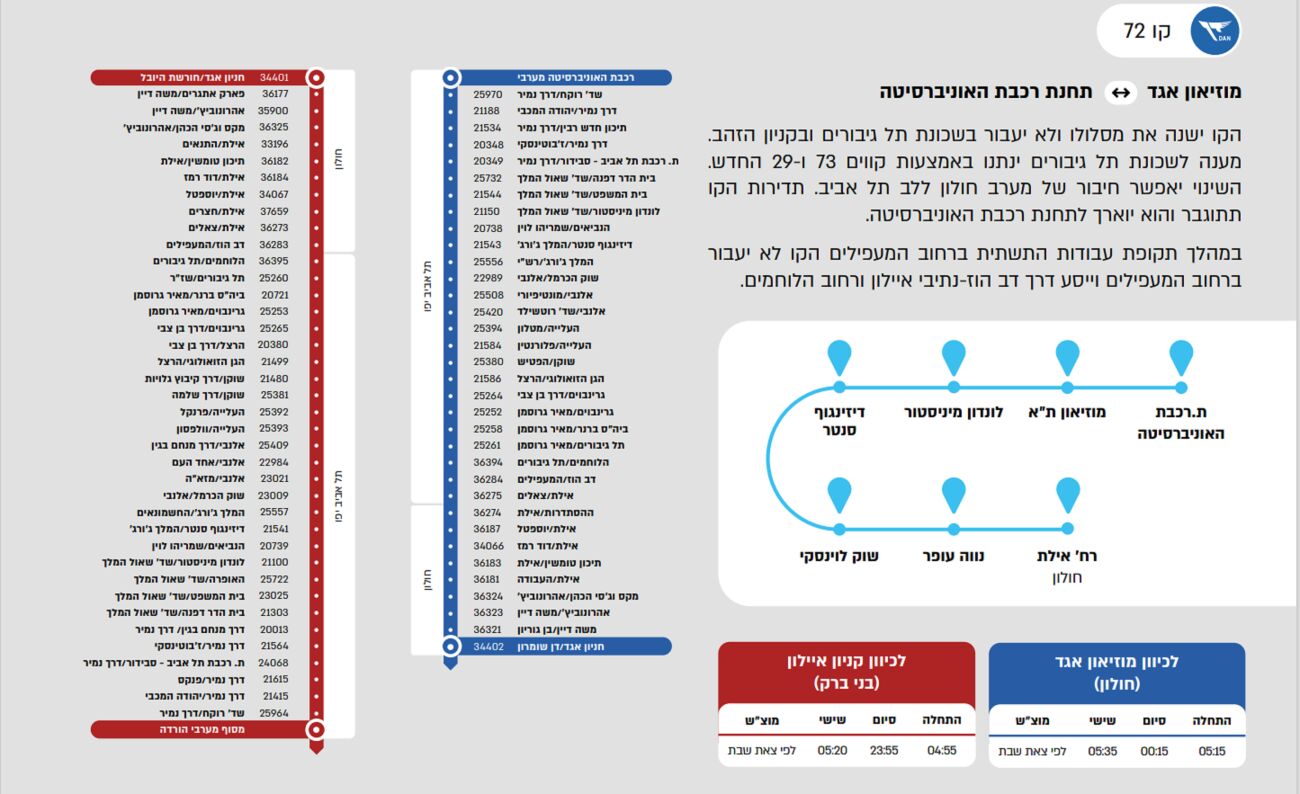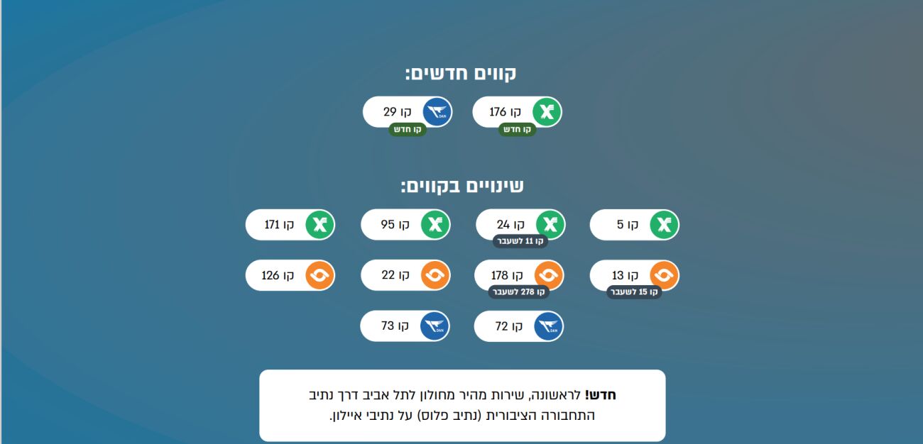 אורחאת כל השינויים על הקווים שמתחדשים שימו שלטים עדכניים שלא התבלבלו. שדן ואגד יהיו מעודכניים....12.06.23 14:53 תגובה