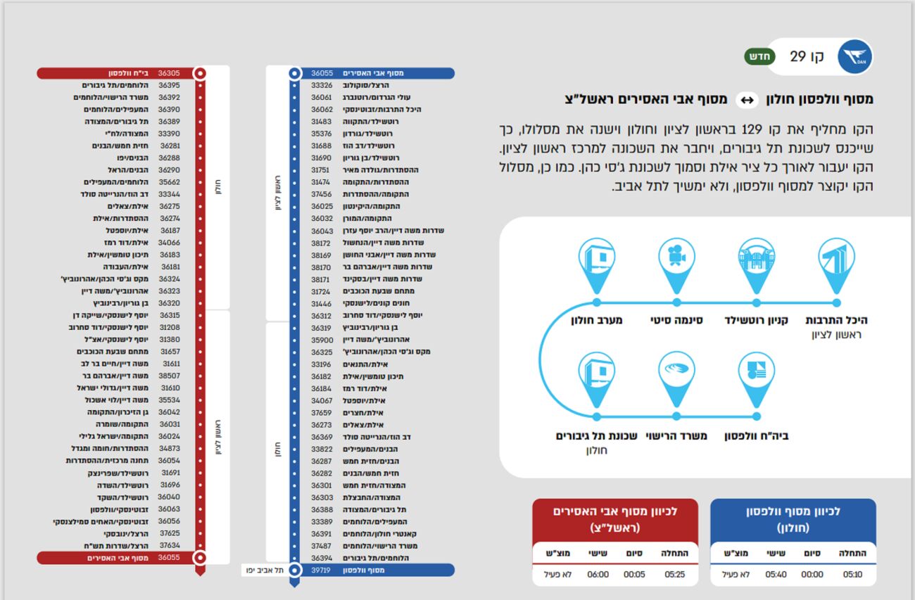 129 של דן- יהפוך לקו 29 ויסיים את מסלולו בוולפסון במקום בת"א