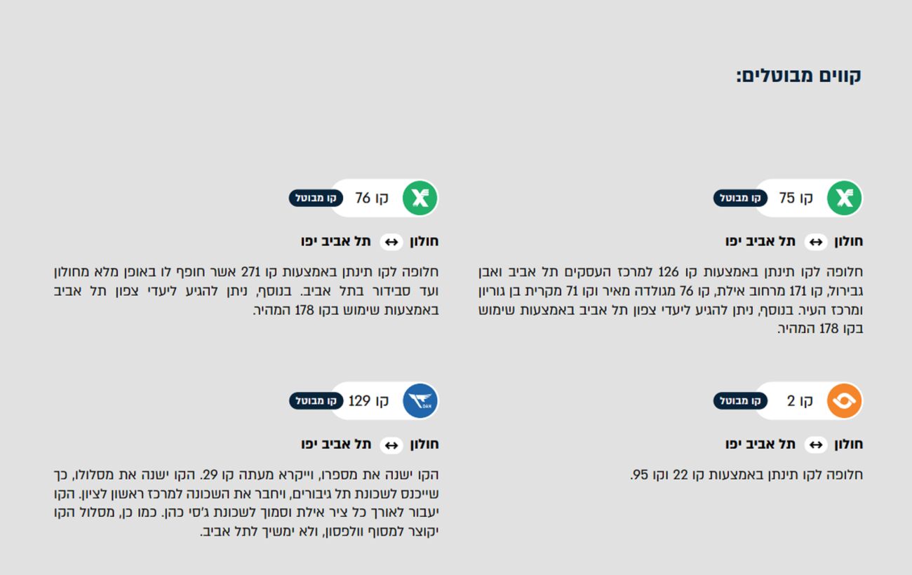 במסגרת השינויים יבוטלו הקווים הבאים: