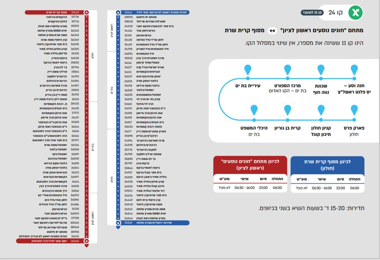 קו 24 של אגד - יחליף את קו 11 בקו חונים נוסעים ראשון לציון-מסוף קריית שרת (שימו לב לא מדובר בקו 11 העירוני של ראשון לציון)
