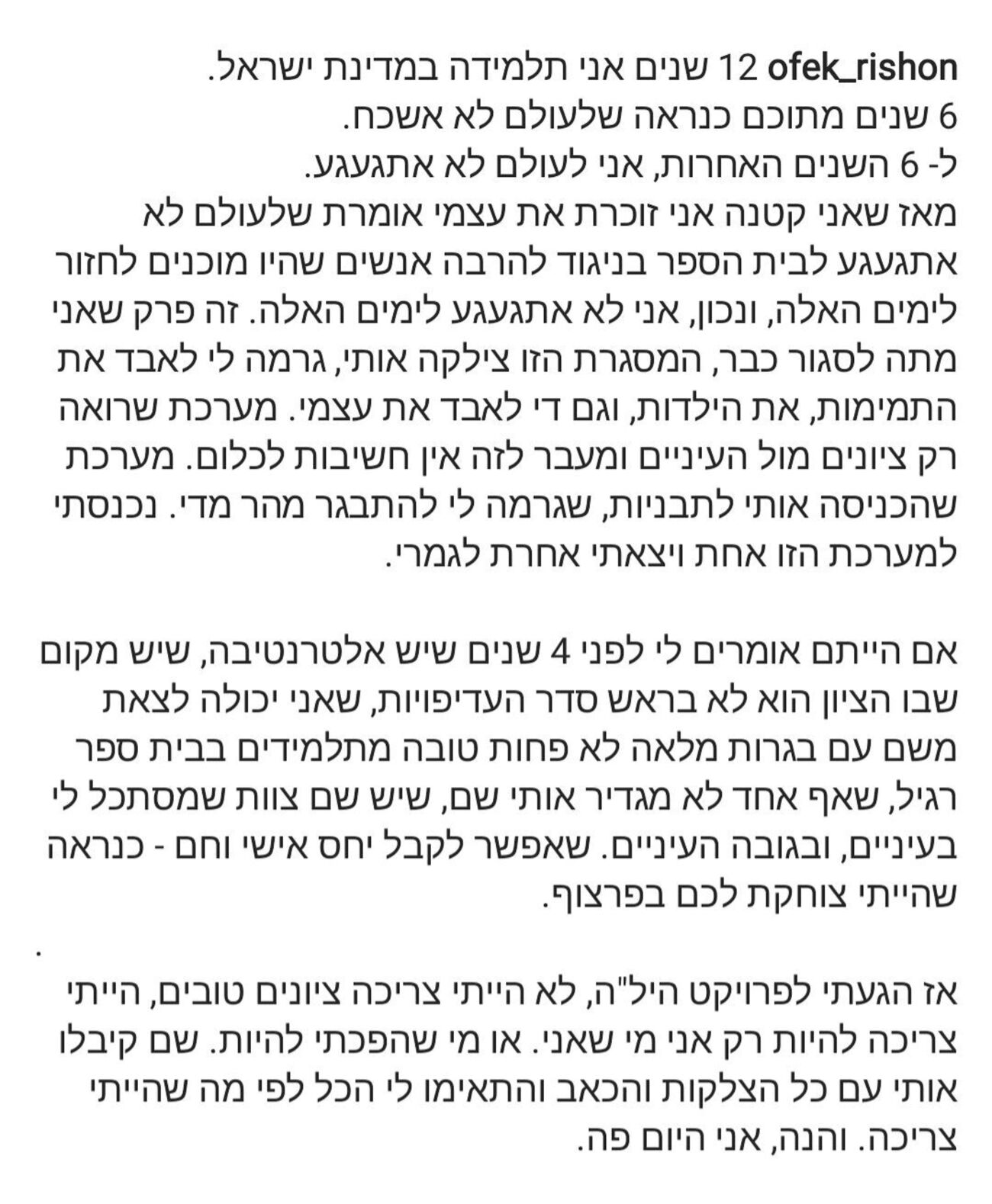 הפוסט שהעלתה אופק שסיכמה 12 שנות לימוד