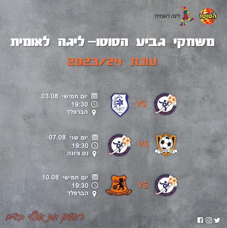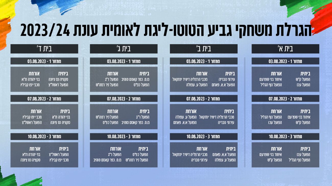 מנהלת הליגות לכדורגל פרסמה את לוח המשחקים של הליגה הלאומית וגביע הטוטו בליגה הלאומית לעונת 2023/24.
