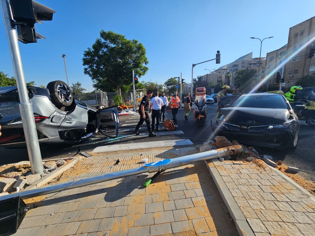 תאונה עם מעורבות שני כלי רכב (אחד התהפך) אירעה ברחוב חנה ומיכאל לוין בראשון לציון.