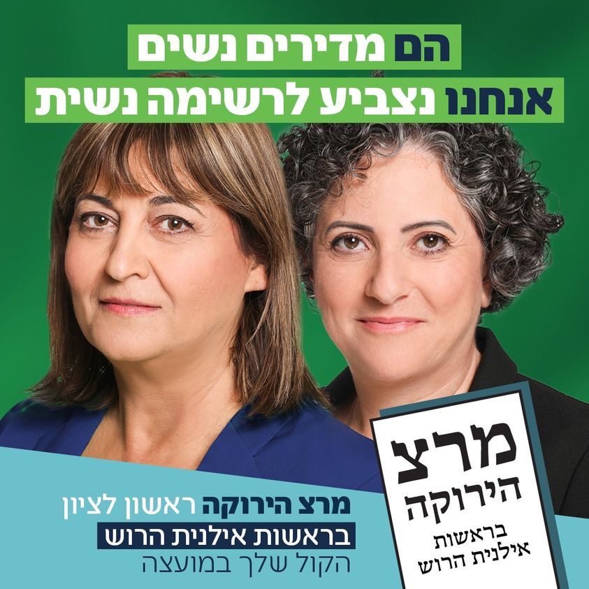 מרצ הירוקה של אילנית הרוש הציבה יחד איתה עוד שתי נשים ליאורה ניאזוב במקום השני וסיגלית יצחקי במקום הרביעי