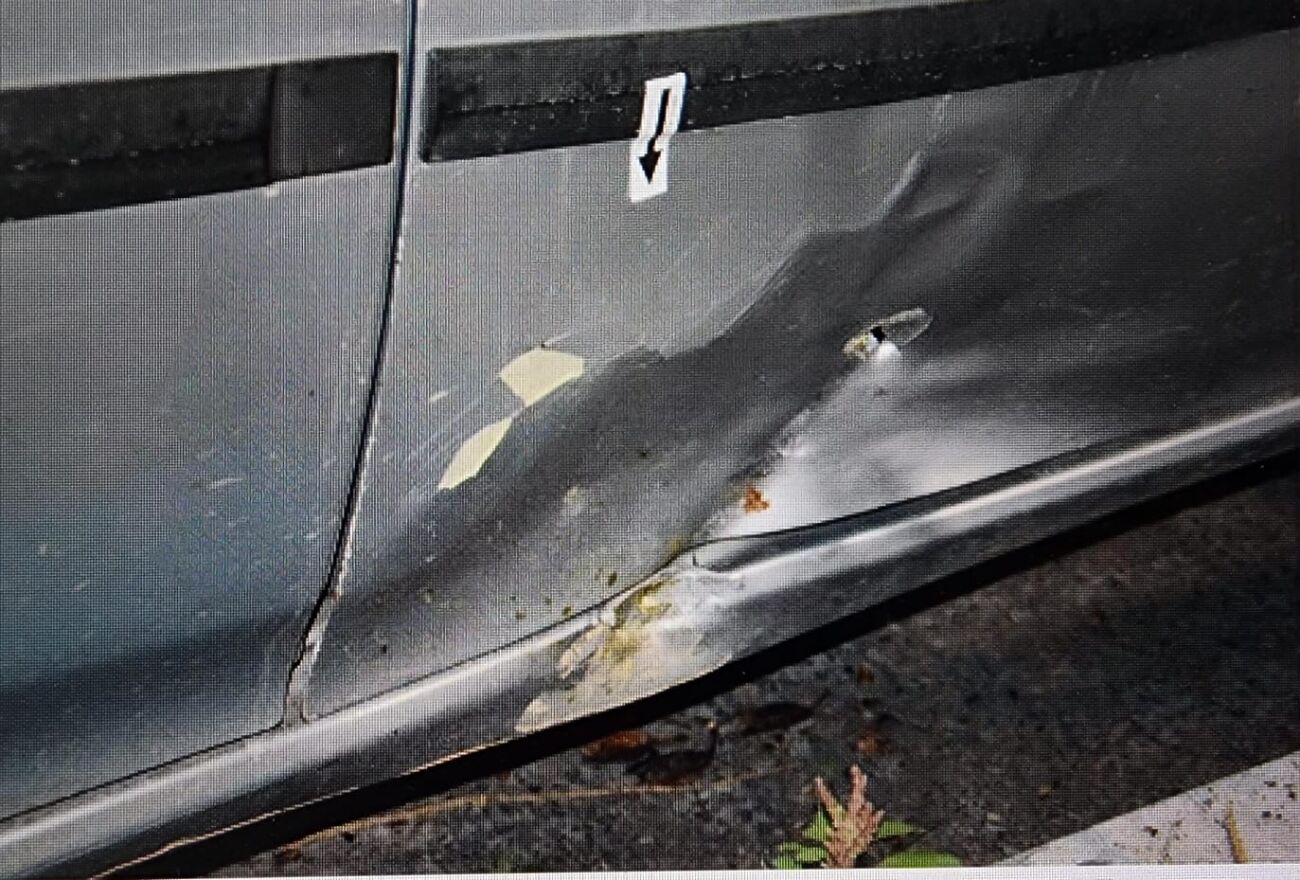 מצ"ב תיעוד ותמונות של המטען צינור והנזק שנגרם לרכב שחנה בסמוך; קרדיט: דוברות המשטרה.