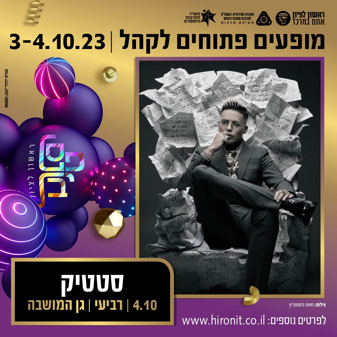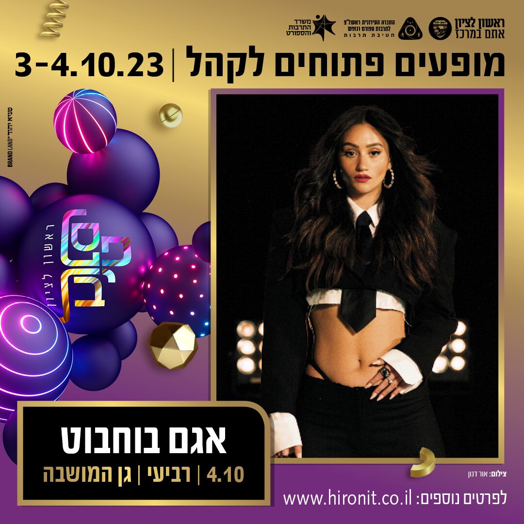 במהלך חול המועד סוכות יפתח פסטיבל ראשון לציון המסורתי במסגרתו יהנו התושבים והמבקרים מהופעות של מיטב אמני ישראל: אגם בוחבוט, סטטיק, מופע רוק עצמאות שחוזר ועוד. ההופעות יתקיימו בגן המושבה, רחבת העירייה, היכל התרבות, בית העם ובלייב פארק.